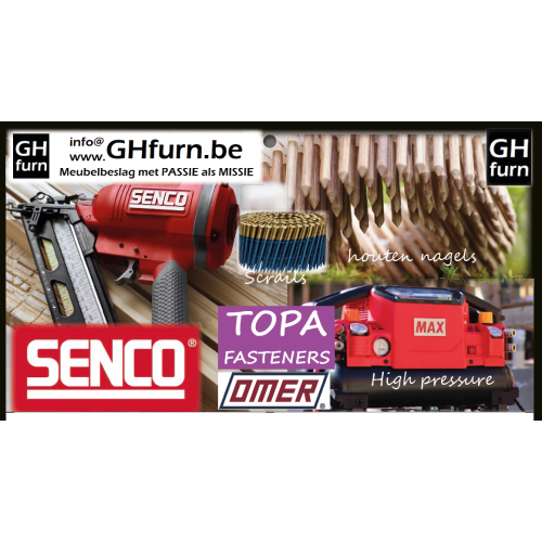 Onder andere Blum scharnieren en geleiders, led verlichting, schroeven, lijmen, alu profielen. Ook SENCO geniet bij ons volle aandacht.